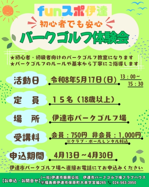 > funスポ伊達 パークゴルフ体験会 参加者募集
