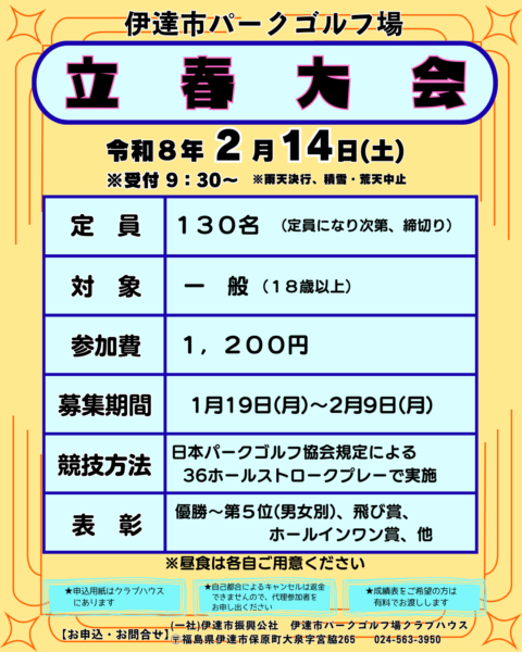 > 伊達市パークゴルフ場 立春大会 参加者募集